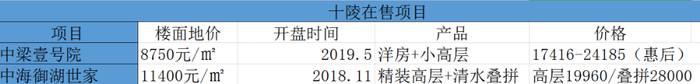 从链家官网上显示十陵板块二手房均价约1.1万/平方米,通过数据比对,不难发现中海御湖世家二期、中梁壹号院的售价与周边楼盘均价存在较为明显的剪刀差。