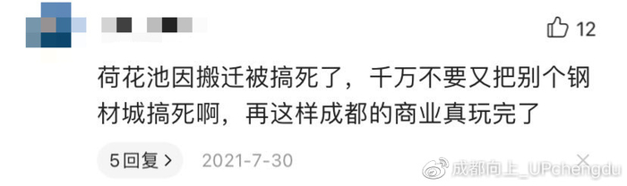 还有人担心,不要因为搬迁把钢材城给搞垮了,毕竟有荷花池搬迁商贸城的前车之鉴,希望牛牛一定要提前布局好,让这些为城市发展贡献过一份力的商铺,挪窝后依旧茂密生长!