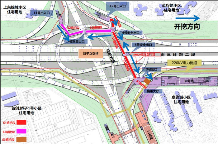 ▍娇子立交站出入口示意图及航拍。图据@成都地铁