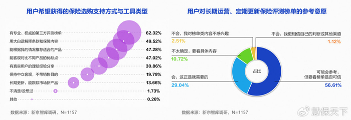 面对决策障碍,用户期待什么样的帮助?报告给出了答案:独立、透明、专业且持续更新的第三方测评工具。调研显示,62.32%的用户希望获得“专业、权威的第三方测评榜单”,85.65%表示愿意参考长期运营的保险测评榜单。用户对测评工具的判断标准极为清晰:“由第三方独立机构发布”与“测评标准公开透明”位居前两名,此外还有“长期持续更新”和“覆盖市面主流产品”。
