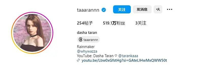Dasha Taran,俄罗斯网红,翻译过来的名字大家应该会很熟悉,名叫达莎·塔兰。