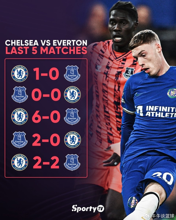 两队历史上有过183次交锋,切尔西70胜56平57负占据上风,最近30次英超主场对阵埃弗顿,他们17胜13平保持不败,创队史纪录。
