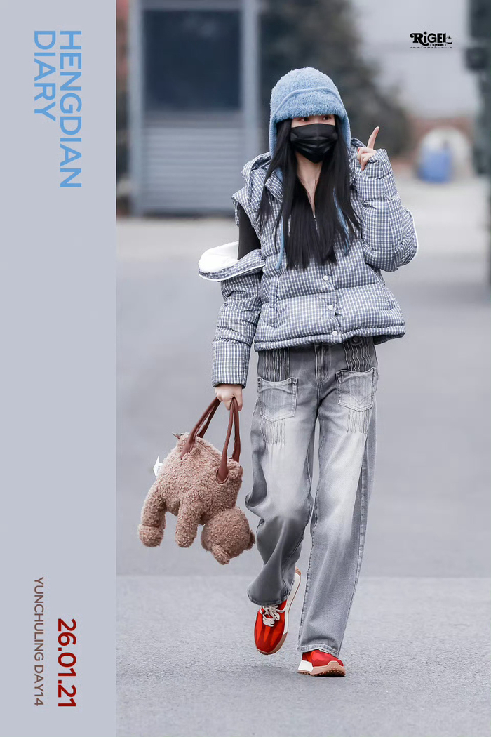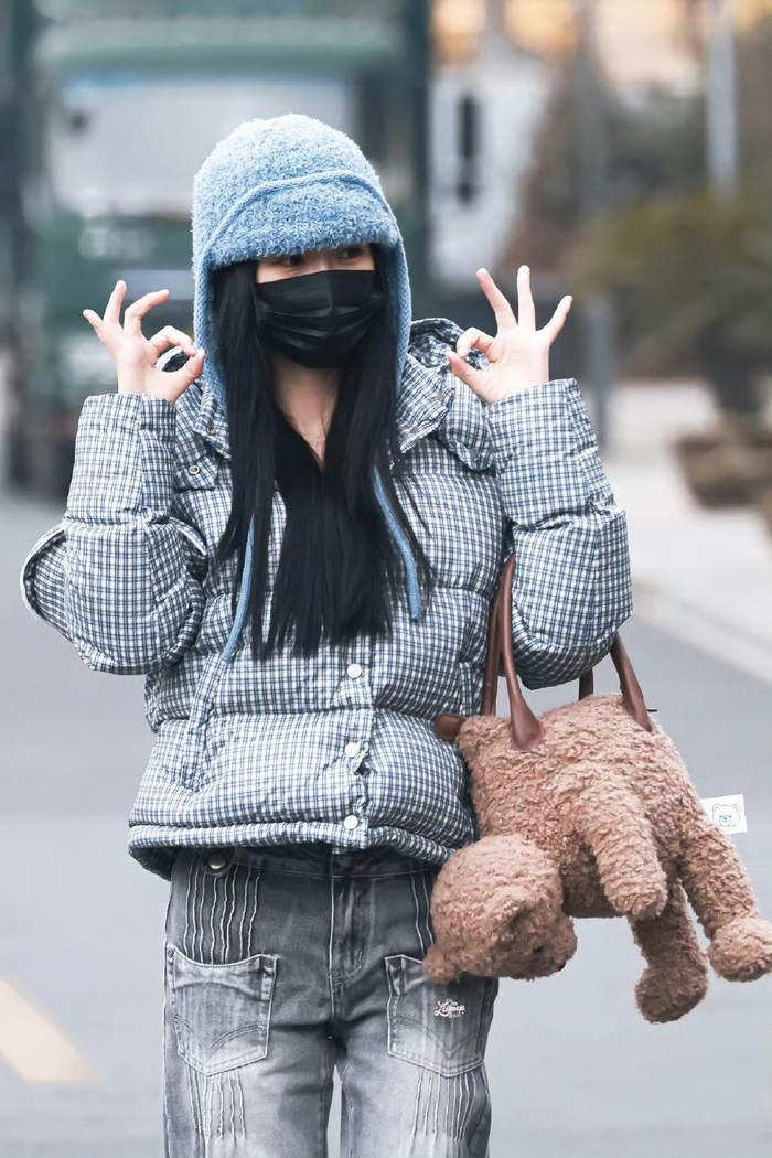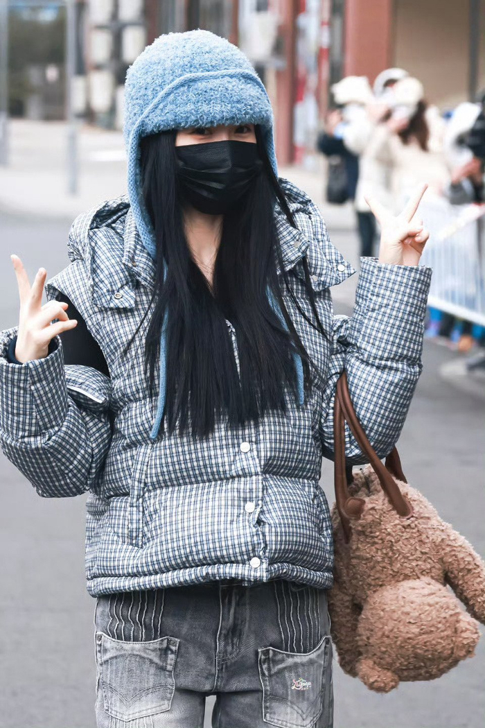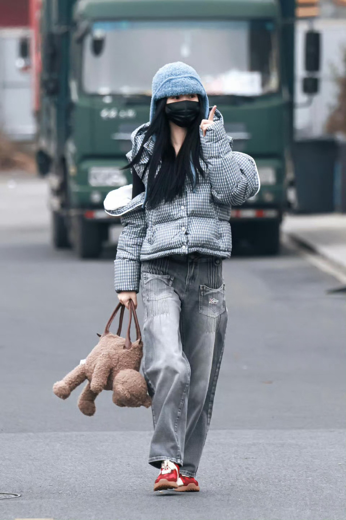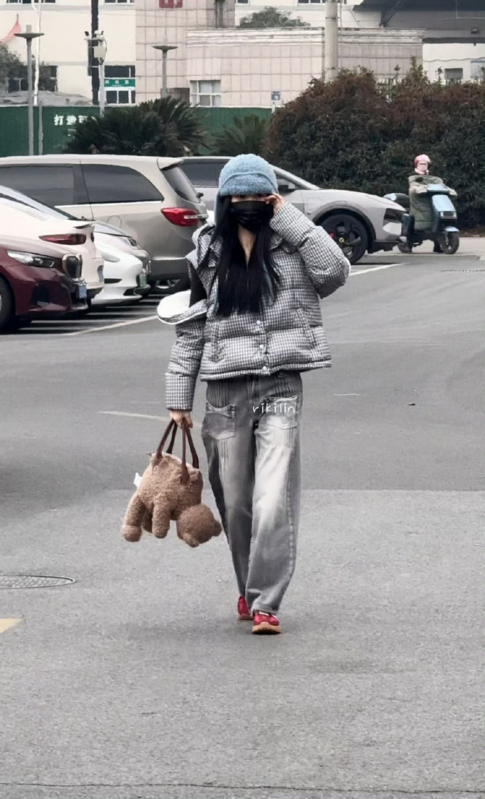 虞书欣温暖系穿搭,是格纹羽绒服灰色牛仔裤look,温暖又很好看,每天跟着小虞学穿搭!@虞书欣Esther