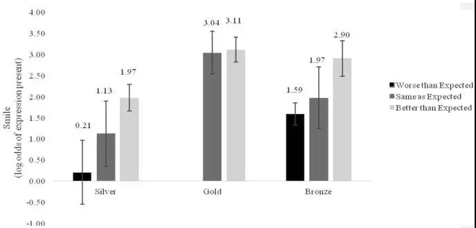 威廉-海奇科克教授及其团队使用电脑软件,对2000到2016这5届夏季奥运会上的领奖台照片进行分析,涉及142个项目、67个国家的413名选手,结果显示,金牌得主的笑容最灿烂(这自不必提),而铜牌得主比银牌选手的笑容确实要更多。