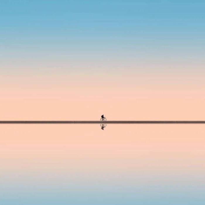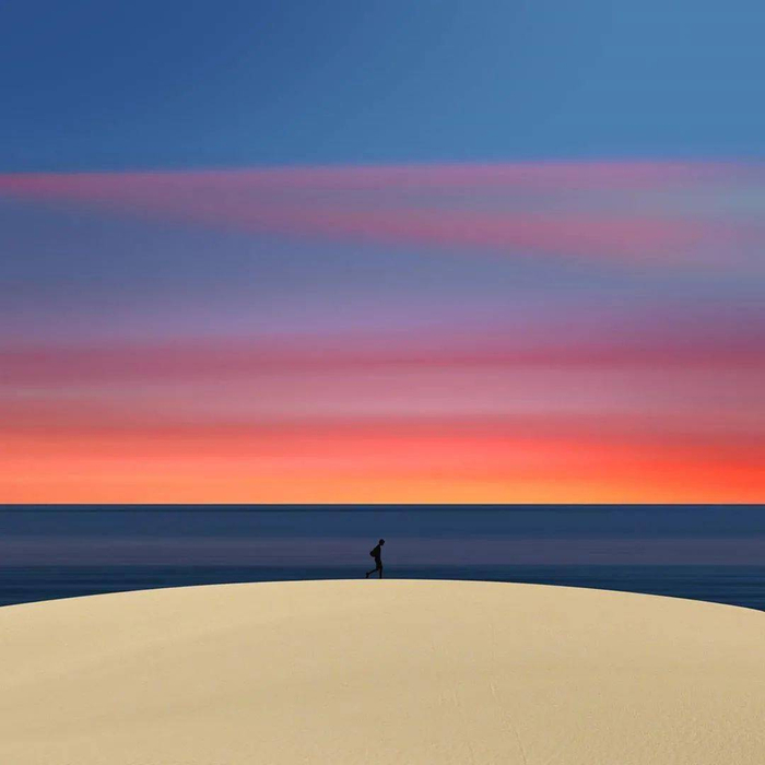 Andhika Ramadhian是一位来自印度尼西亚的平面设计师。图案和色彩是他作品中最突出的两大元素,刻意营造出“人之渺小”和“背景之空旷”的强烈反差的超现实主义、极简主义风格的作品。