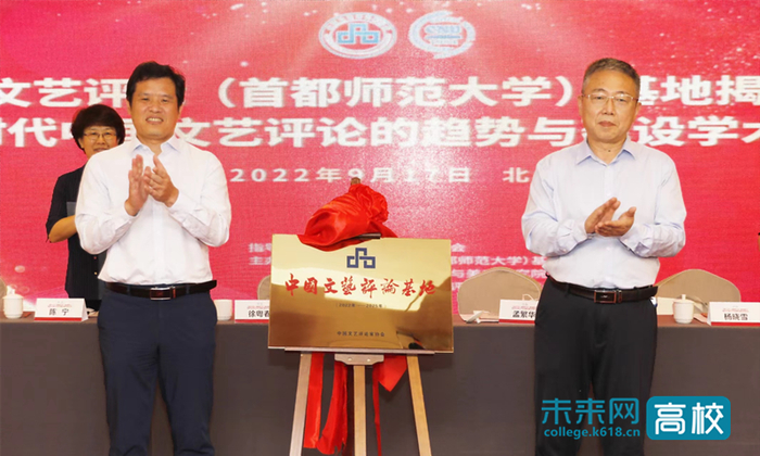 9月17日,中国文艺评论(首都师范大学)基地揭牌仪式暨“新时代文艺评论的趋势与建设”研讨会在首都师范大学举行。中国文艺评论家协会副主席兼秘书长、中国文联文艺评论中心主任徐粤春,北京市文联党组书记、常务副主席陈宁,中国文艺评论家协会副秘书长、中国文联文艺评论中心副主任杨晓雪,首都师范大学党委书记孟繁华,党委常委、副校长雷兴山,以及社科处、教务处、文学院、音乐学院、美术学院、中国书法文化研究院、艺术与美育研究院等部门领导出席揭牌仪式。