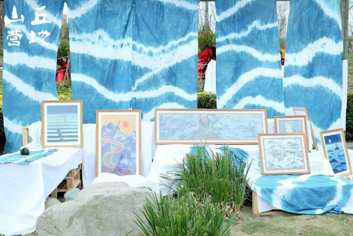 没有繁忙的工作,没有林立的高楼,快节奏的生活,只有满目盎然的春光,盈盈的碧波,湿地里随风摇摆的芦苇和用心创作艺术的人们。凡尘俗事仿佛被隔绝在对岸,在山丘营地你可以放心松弛下来,感受艺术的多种形式,观赏和穿行于幅幅蓝色的山峦或花朵中,近距离感受体验非遗文化的乐趣。