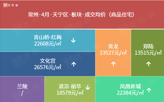 从板块成交均价来看,4月天宁区青山桥-红梅、清凉-丽华两大板块成交均价环比下跌。其中,清凉-丽华板块房价跌幅最大,约14.3%,与4月板块内较高房价房源成交量减少有关。