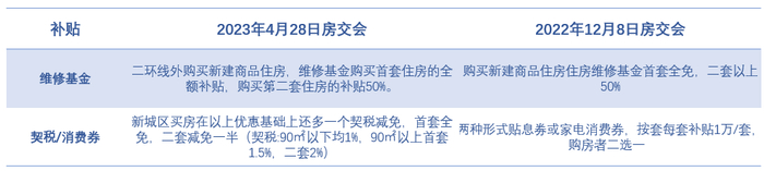 补贴额度:除维修基金外,按三环外1万/㎡楼盘,100㎡算,首套契税减免即1.5万,二套减免一半即1万,整体来看跟2022年房交会补贴差距不大;