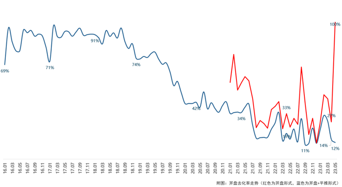 (红色为开盘形式,蓝色为开盘+平推形式)