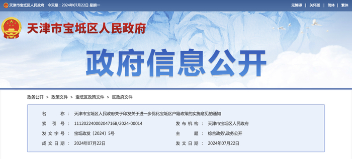 近日,宝坻区人民关于印发关于进一步优化宝坻区户籍政策的实施意见的通知。
