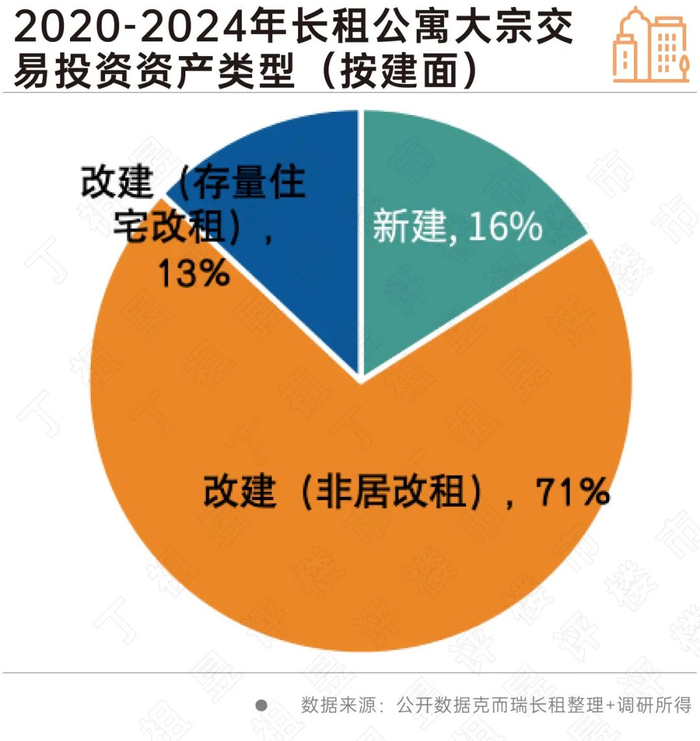 投资资产类型上,非居改组类占比高达71%,说明资方对成本和风险的敏感度较高,他们偏好于能快速变现项目;投后产品定位上,则更加倾向于收益更高的服务式公寓。