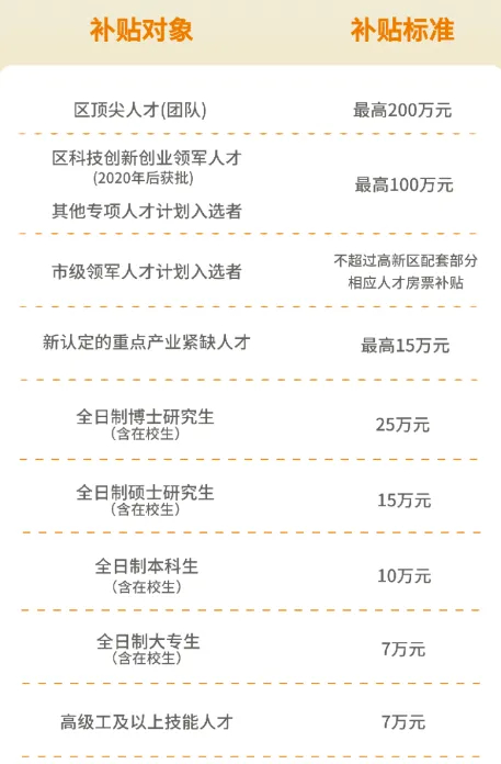 2、对高级工人才、全日制大专生、本科、硕士、博士,分别给予7万、7万、10万、15万、25万元房票补贴。最高补贴200万元!
