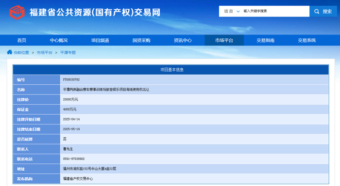 2023年12月11日,平潭综合实验区文旅发展集团曾以3.28亿元成功摘得平潭首宗挂牌出让海域使用权(岚海挂2023001号),用于建设全省首个国际二级赛道。