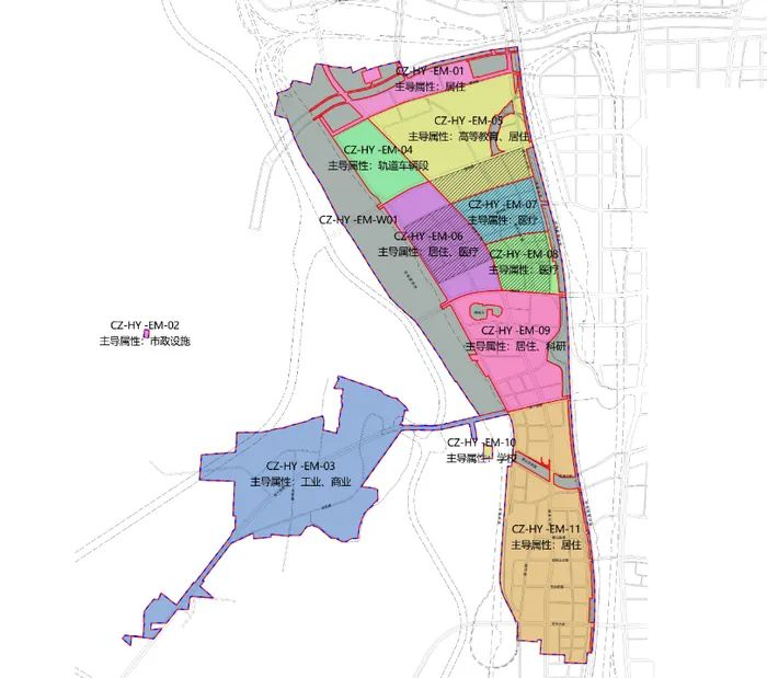 该片区划分为10个街区,发展以精准医学研发、智能装备制造、医药装备物流、再生医学诊疗为主导功能,兼容康居配套功能的智慧成果转化示范基地。其中,07街区主导属性为科研、商业商务,05街区为居住,容积率2.4;08街区为工业、居住混合,居住地块容积率2.0.