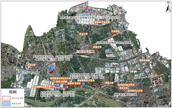 陈村四宗涉宅地块分别为陈村镇石洲岗北工业园城市更新(“三旧”改造)项目,陈村镇绀现北绀村、大都文登工业园城市更新(“三旧”改造)项目,陈村镇弼教工业园(西侧地块)城市更新(“三旧”改造)项目和佛陈路北侧商住用地。