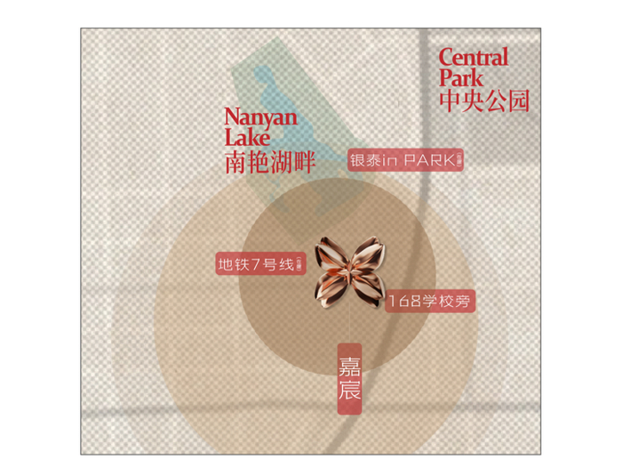举步即达的千亩南艳湖公园与城市绿肺中央公园,双公园环伺,无处取代的自然浓度:约1.5公里范围内,公园式商业银泰inPark、168玫瑰园学校(南校区)、地铁7号线(在建)等顶级商业、教育、交通资源环伺,构建起高浓度、高密度、高品质生活圈。