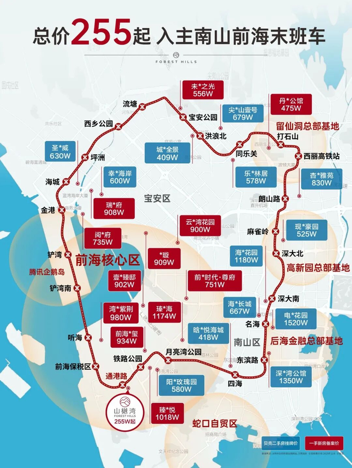 与此同时,她在南山租住类似两房的月租金,已接近8000元。放眼山樾湾所在的前海片区,周边同等品质小区的市场租金,也普遍在 7000-8000元/月 的区间。