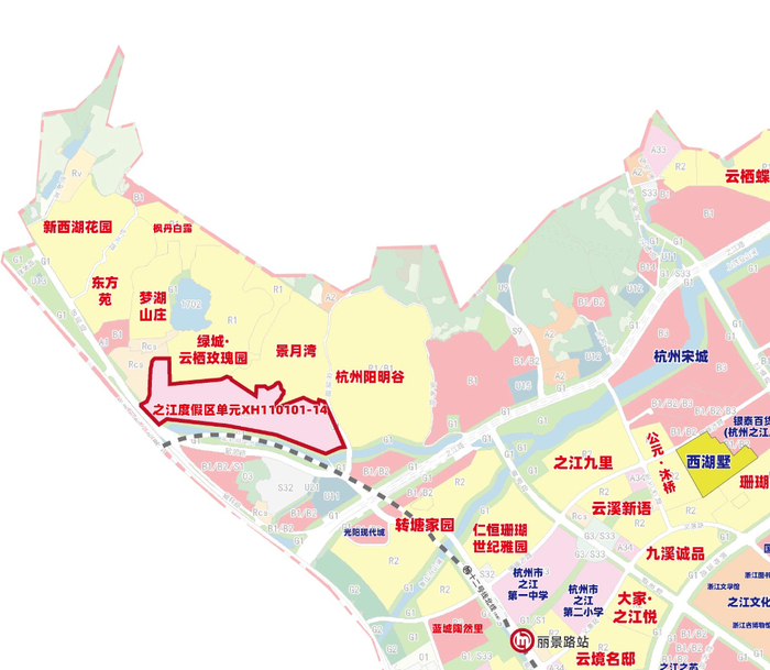 之江度假区单元XH110101-14地块,容积率仅1.04,面积193.8亩,该地块由学改住而来,背靠西湖群山,紧邻地铁12号线庙山站,周边顶豪氛围浓厚,配套成熟。