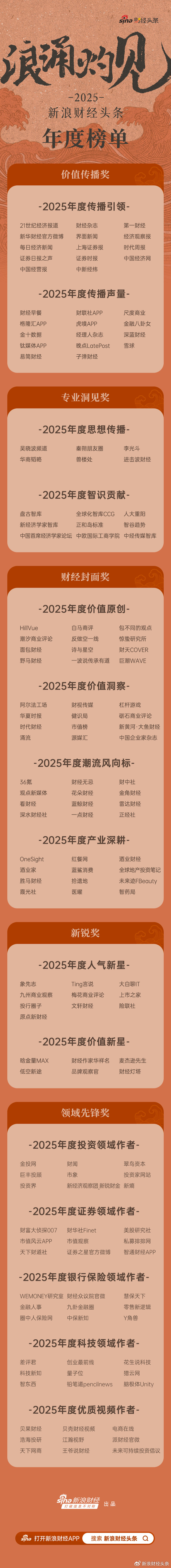 2025新浪财经头条年度榜单获奖媒体名单如下(排名不分先后):