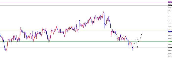 关键分水岭0.5710位置,价格上破之前维持空对待