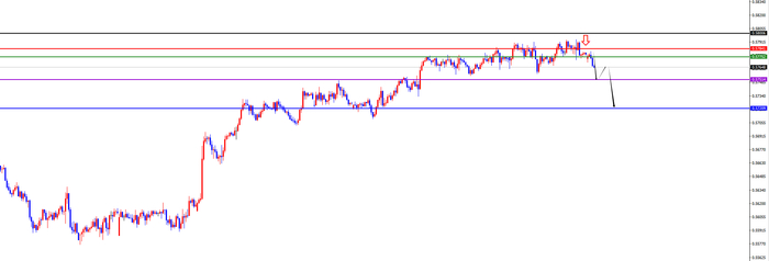 关键分水岭0.5775-85区域,价格没有出现反转之前先维持空