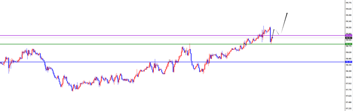 短线关键分水岭98.80区域,价格没有出现反转信号前看多