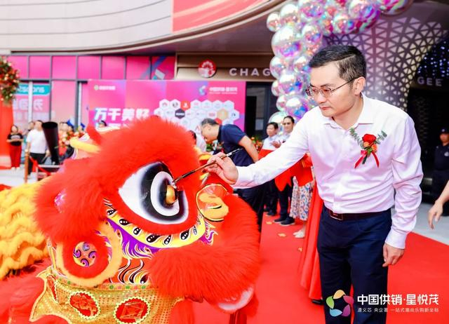 瑞狮点睛是中华民族悠久文化中的重要环节,象征着吉祥如意与繁荣昌盛。当两位领导手持象征吉祥的毛笔,蘸上朱砂,轻轻点在雄狮的眼上时,全场掌声雷动,欢呼声不断。这一刻,不仅是对中国供销·星悦茂未来的美好祝愿,更是对这座城市经济发展和文化传承的深刻寄托。