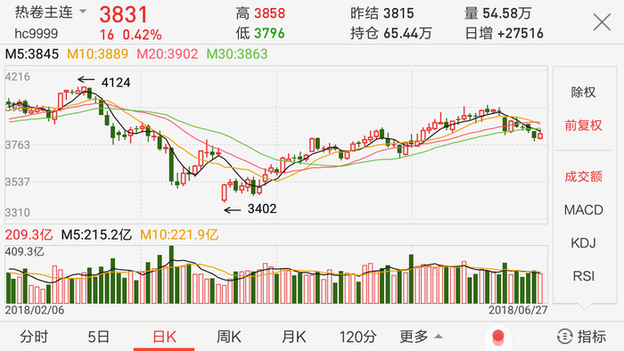 热卷这两天跟随螺纹钢,出现可以尝试的机会。热卷这两天把上升通道下破,需要关注3800-3850的区间,主要还在这个区间或区间以下,有空单者可以暂时继续持有,如果明天继续压制,继续下行的概率会加大,第一目标区间在3600-3700区间附近。