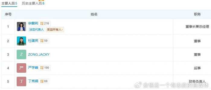 陕西娃哈哈的主要人员中,杜建英和Zong.Jacky都在列。