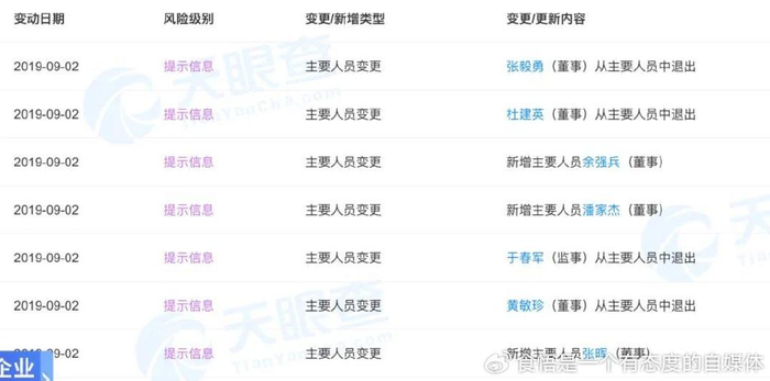 资料显示,2019年9月2日,娃哈哈集团3名董事出现更迭:四位董事中,除吴建林之外,张毅勇、杜建英、黄敏珍三人均不再担任董事,由余强兵、潘家杰及张晖接任。