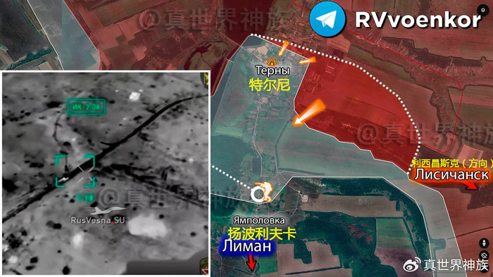 2.红利曼战线,特尔尼南部的艰苦战斗仍在继续。之前俄军有装备抵达过扬波利夫卡北郊,但这是利用天气原因避开了乌军防御的偶然行动。