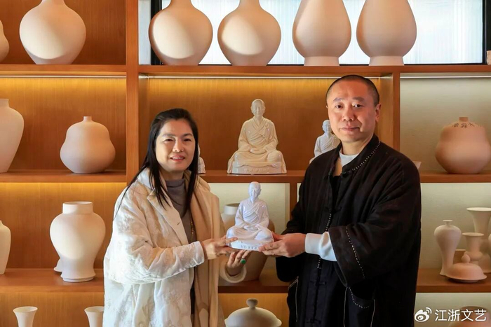 窑火不息,茶香永续。跨越千年,德清柴窑首出的这33尊南朝法瑶禅师圣像,以无釉裸烧的本真质感,致敬法瑶禅师的禅茶初心,也回望着禅茶初源的千年传承。当莫干山的云雾再次萦绕茶园,当民宿的茶寮又响起注水的轻响,这尊穿越千年的圣像,正静静诉说着:真正的茶文化根脉,早已深深扎根在这片有德之土,在茶人与山水的相守中,在朴拙与自然的共鸣里,生生不息。