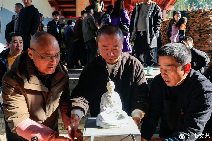 当德清柴窑的烟火褪去最后一缕余温,33尊南朝法瑶禅师圣像在窑火淬炼中静静出世。胎体之上,没有刻意施釉的雕琢,唯有自然落灰与火焰亲吻留下的肌理,仿佛凝固了千年前小山寺的晨钟暮鼓与茶香氤氲,这尊承载着禅茶初源记忆的圣像,为莫干山的青山绿水间,再添一抹穿越古今的文化亮色。