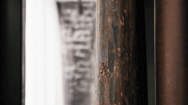 保留了老梁柱、砖墙,简单地刷上清漆加以保护,并在老柱子旁加上同色系的钢柱,其余则选用简洁的黑色龙骨稳定结构。