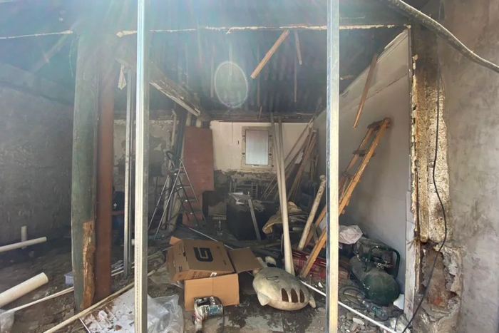 加上梁柱、大门、墙面、管线等破败不堪,申江海决定保留承重的山墙和梁柱,把隔间打通,重新划分成一房、一厅、一厨、两卫。