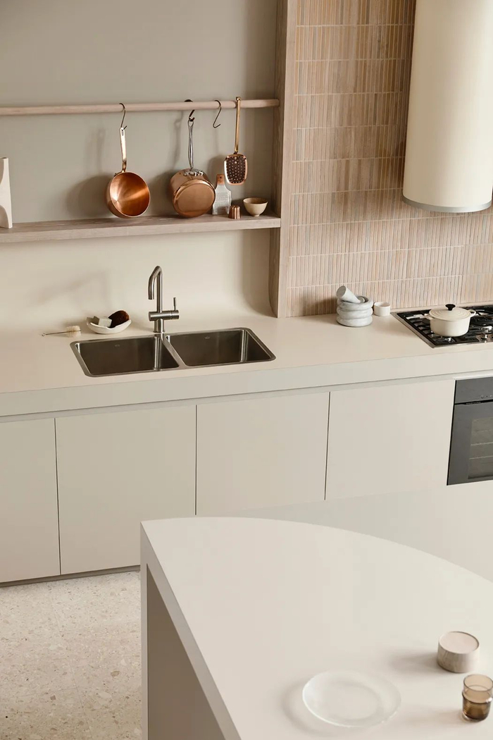 Laminex 2是一个厨房项目,小小的厨房通过颜色材质、墙面的凹凸将厨房给人的感觉比实际面积要大得多。更深层次的台面,为更多的准备和烹饪空间,深色带来的深邃与稳重让这里更加和谐。
