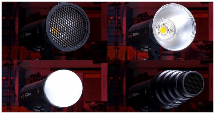 这么一算目前金贝这个卡口只是缺了一个柔光附件而已,而这个柔光附件目前的解决方案就是HD200pro的另一特点,灯头变焦!与HD200pro一同发售的还有这个金贝3爪卡口,个人觉得这个名字起的有点不太容易记住,可以考虑改改。把HD200pro装进这个3爪卡口以后,就可以直接安装保荣卡口的附件了。并且灯头可以变焦。这就意味着可以通过灯头变焦来微调硬质罩的热点大小,以及在柔光箱内更有效的提高灯光发光的利用率。
