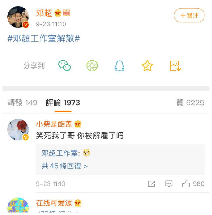 邓超工作室真的是继承了邓超的幽默感,不过这次也是让不知情的网友紧张了一下,不过知道原因以后,大家也是被逗乐了,有点网友还留言说邓超这是被工作室开除了
