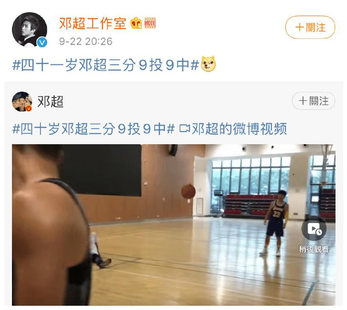 “四十一岁邓超三分九投九中”