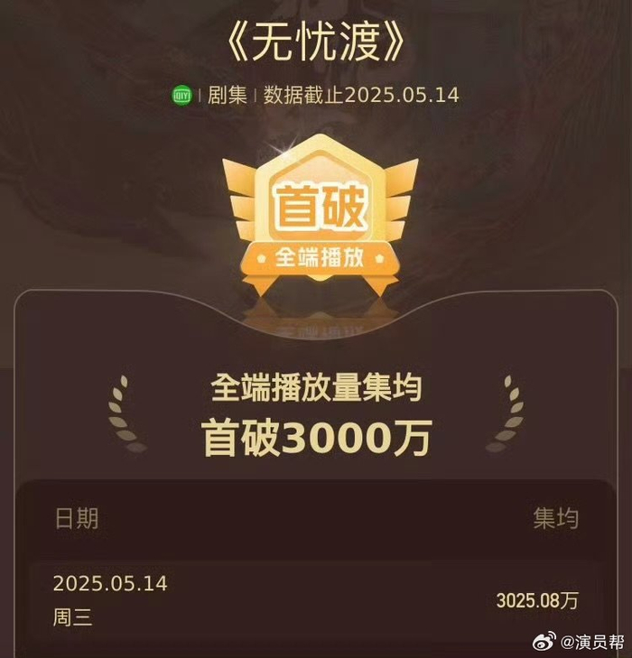 《无忧渡》集均播放量破 3000 万,在爱奇艺 2025 年古装剧里一马当先,超厉害!