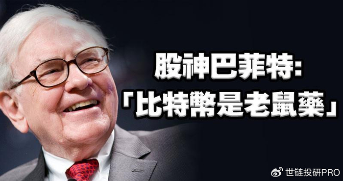 当比特币在 100 美元时,巴菲特说比特币是老鼠药,涨到 9000 多美元时,有记者再次问他,巴菲特回答说:“可能是老鼠药的平方了”,直言投资比特币与喝下更毒的毒药没有区别。