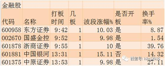 上涨情况:金融股上涨,证券股和银行股近乎全线飘红,助力大盘冲关。
