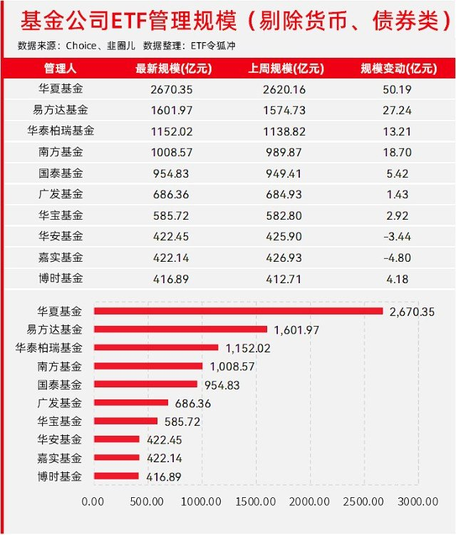 基金公司ETF规模排名(剔除货币与债券类)