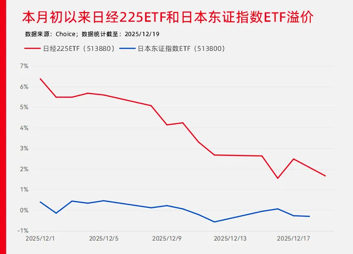 从溢价率上也能看出来,本月日经ETF的热度正在迅速降温。