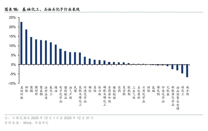 化学原料及化学制品制造业投资固定资产累计投资额于2025年6月开始转负,且仍在持续下跌;SW基础化工行业及多个细分子行业的资本开支连续多个季度转负。