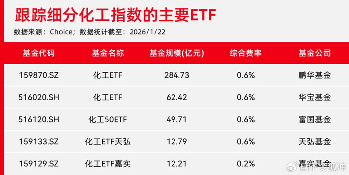我们整理了一下目前跟踪细分化工指数的主要ETF。从规模上看,化工ETF(159870)更有优势;从费率上看,化工ETF嘉实(159129)费率更低。