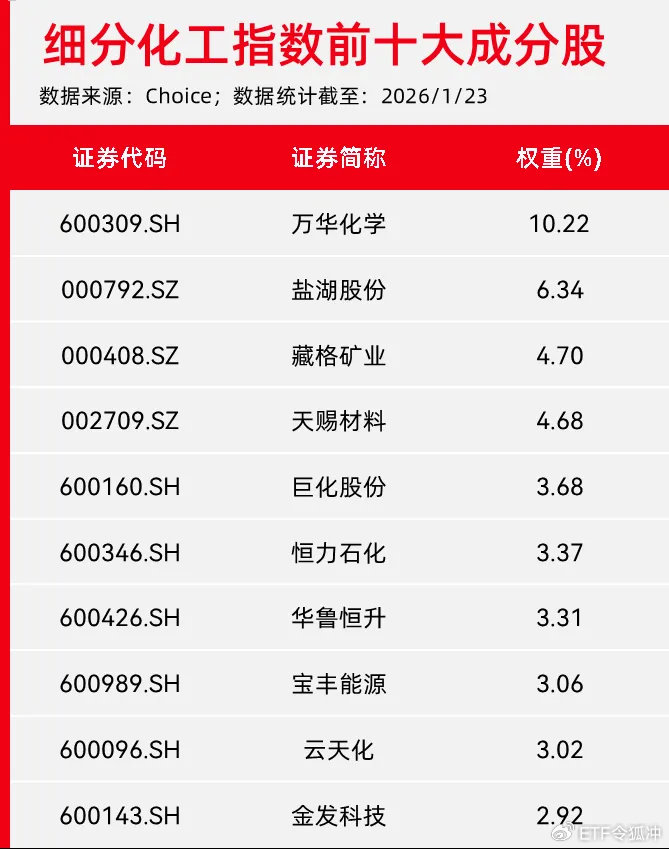 目前市场上主要的化工类指数是细分化工指数(000813),它涵盖了多种化工商品生产方,包括综合性化工企业万华化学,主营钾肥和锂盐的盐湖股份;主要生产氟化钾和碳酸锂的藏格矿业......通过涵盖各领域50只成分股的加权平均计算,该指数能有效反映A股化工板块走势。