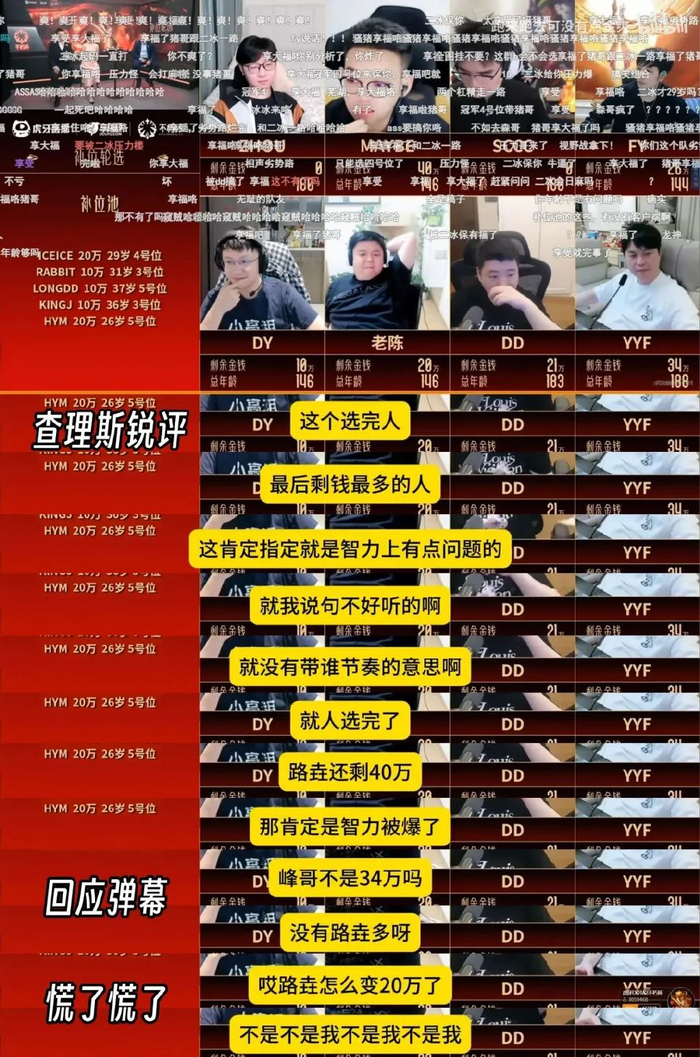 特别是四大天王那一轮,几个最强的核心位选手全凑一起了。当时yyf明明有机会补强核心,却没狠下心梭哈,愣是均注送菜。眼睁睁看着1、2号位的热门人选全被其他队抢走,最后选完人留下34万没花。