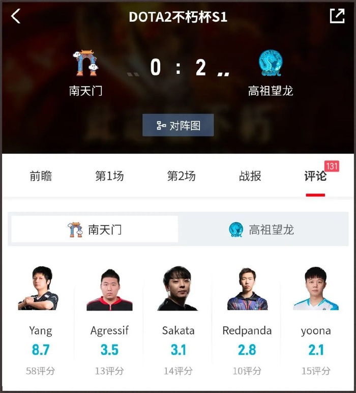 随着5月19日Dota2不朽杯复健赛最后一天结束,南天门 0:2 不敌 高祖望龙。他们以 0-6 的厕所战绩,成为唯一一支全程未获1个小分的队伍,谁都能在他们头上拉屎。
